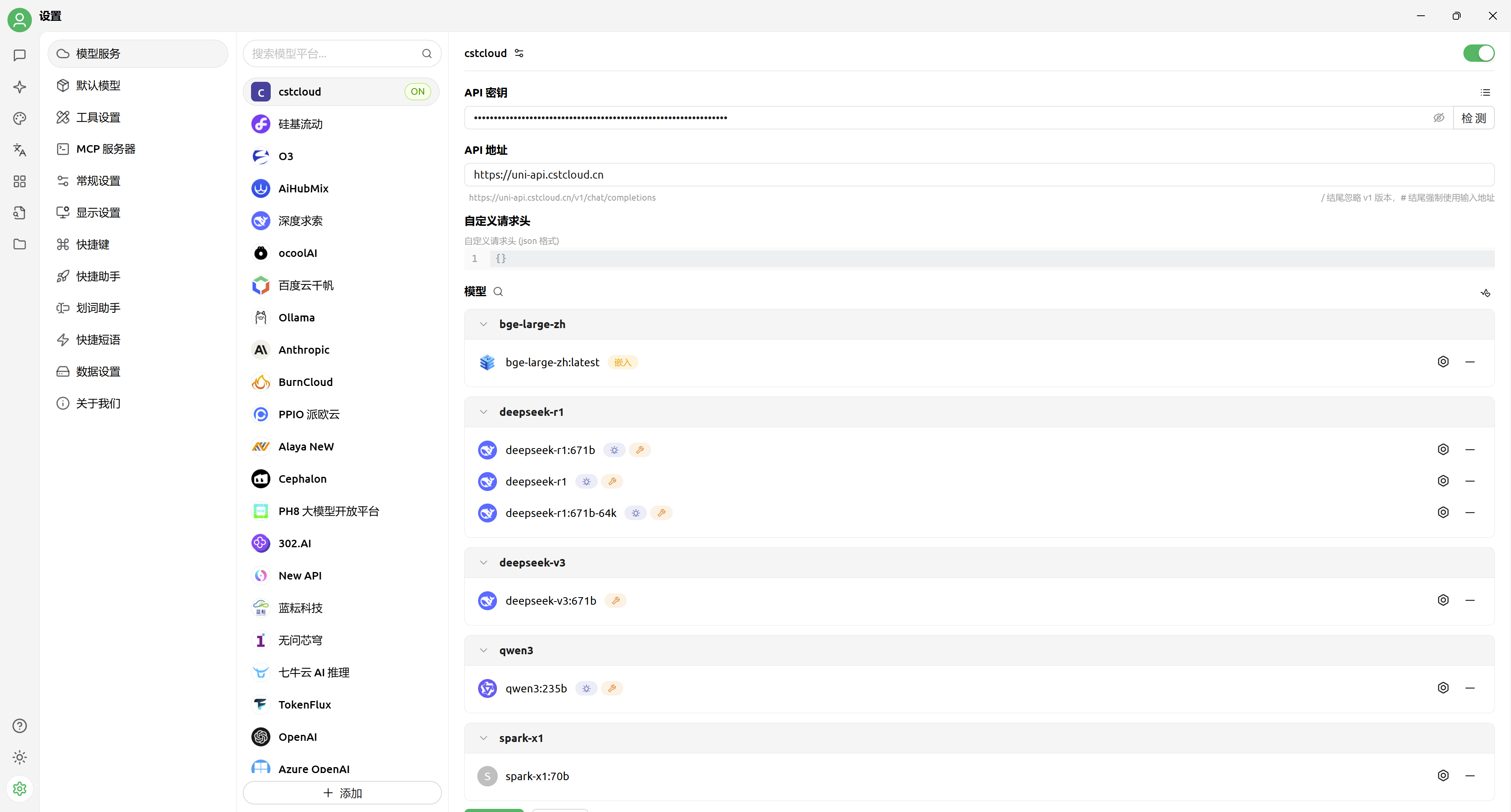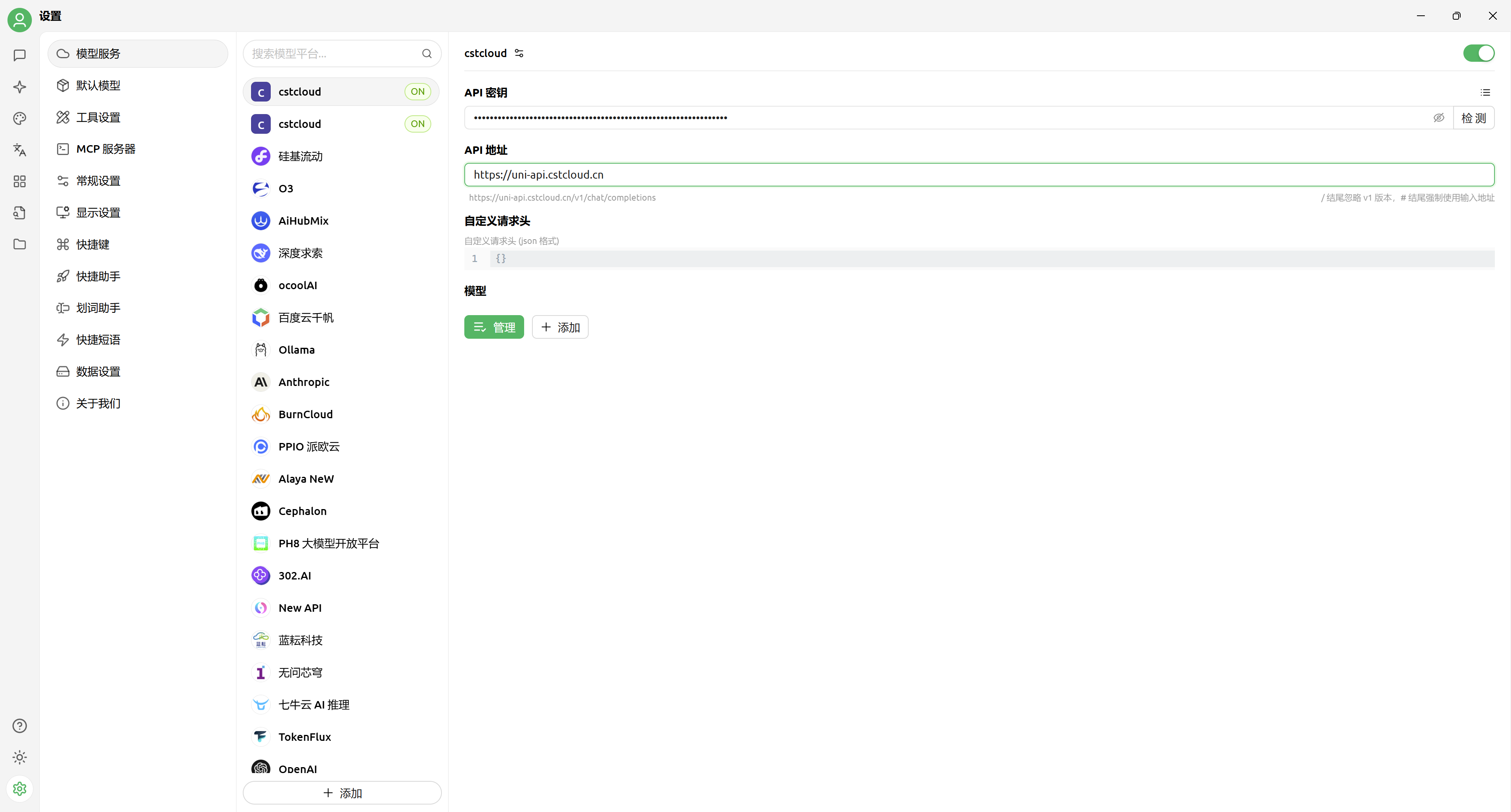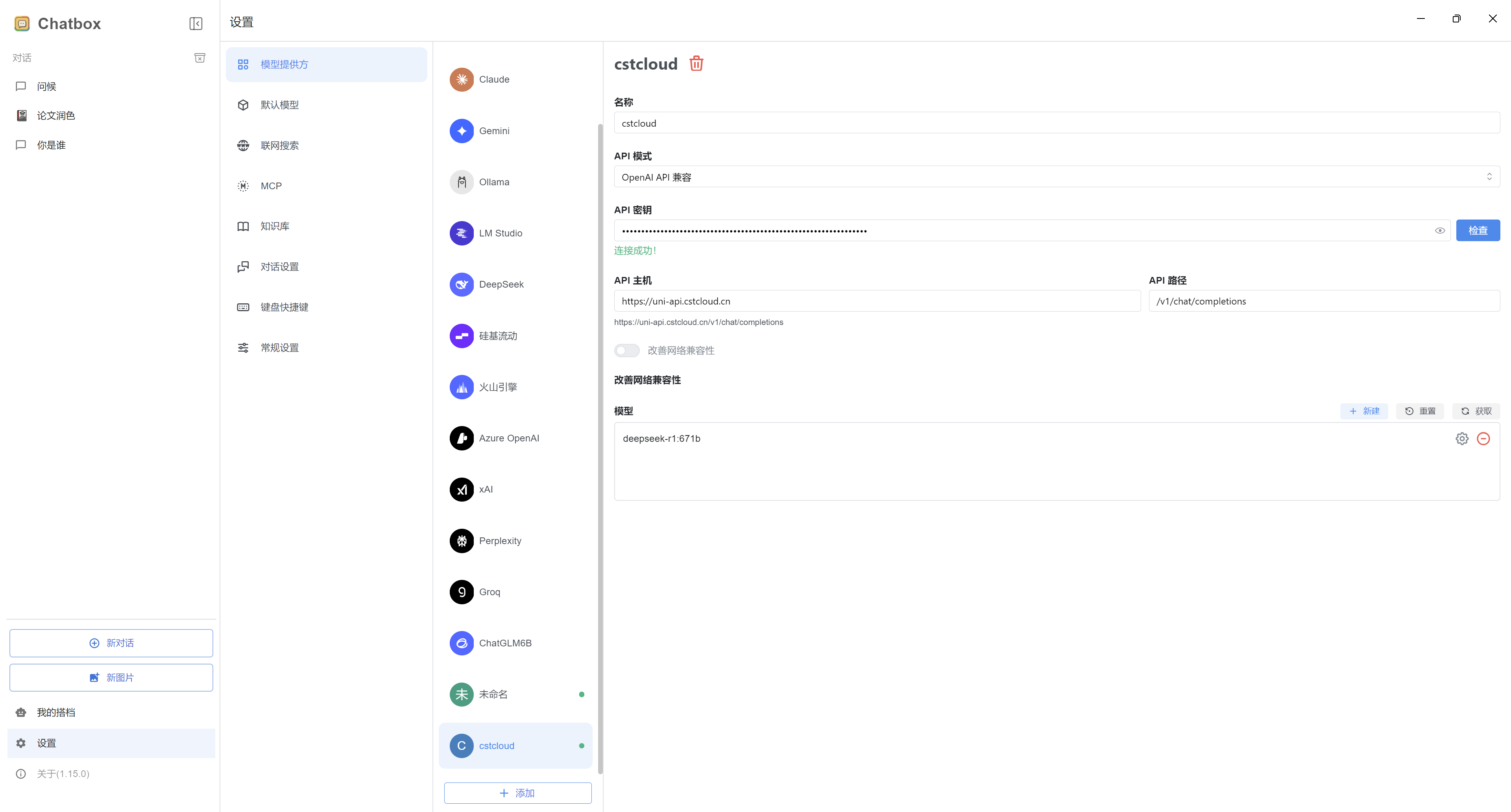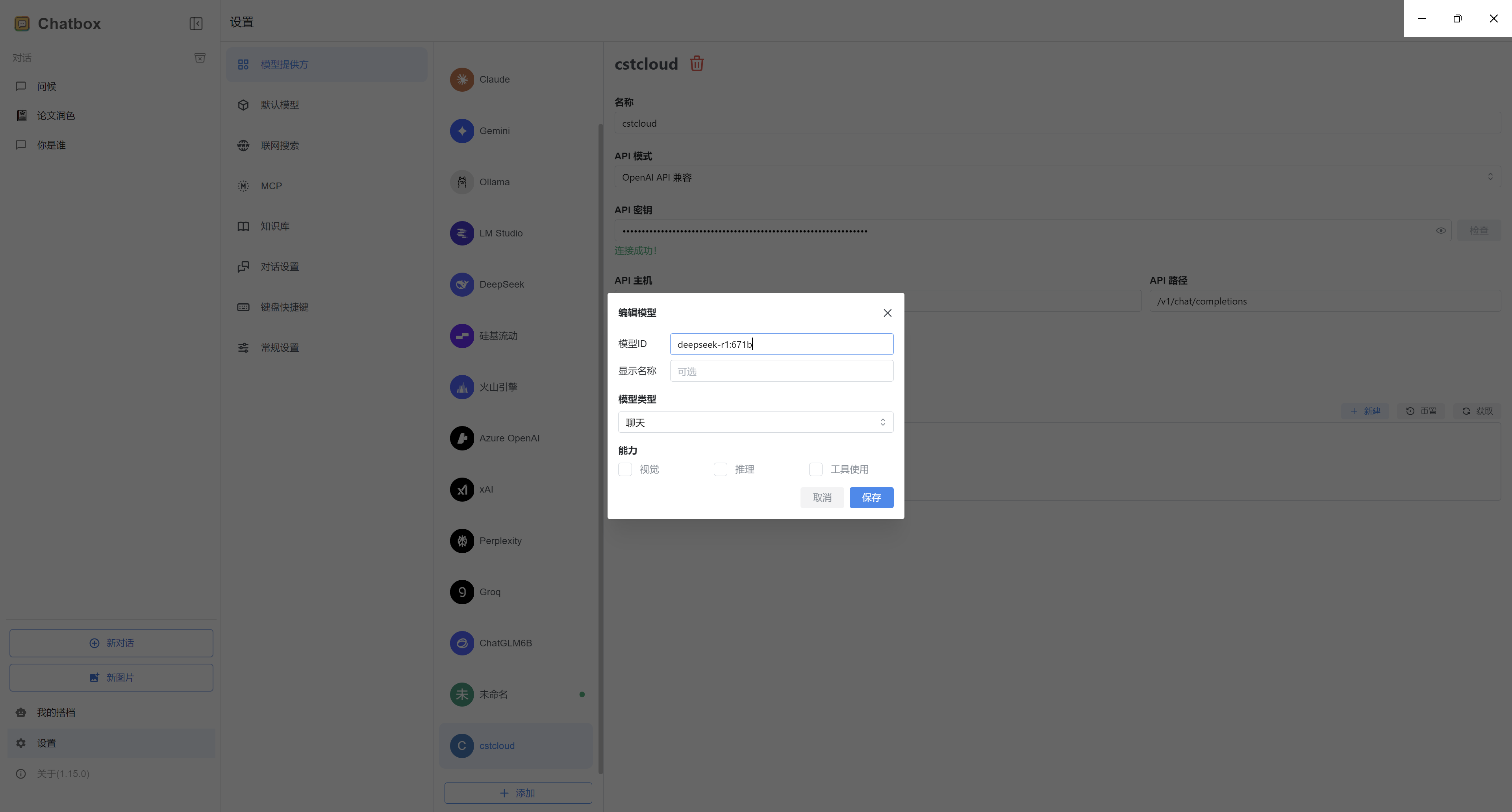 后,该模型即可在 Cherry Studio 中使用,如下图:然后可在模型提供商信息页面的