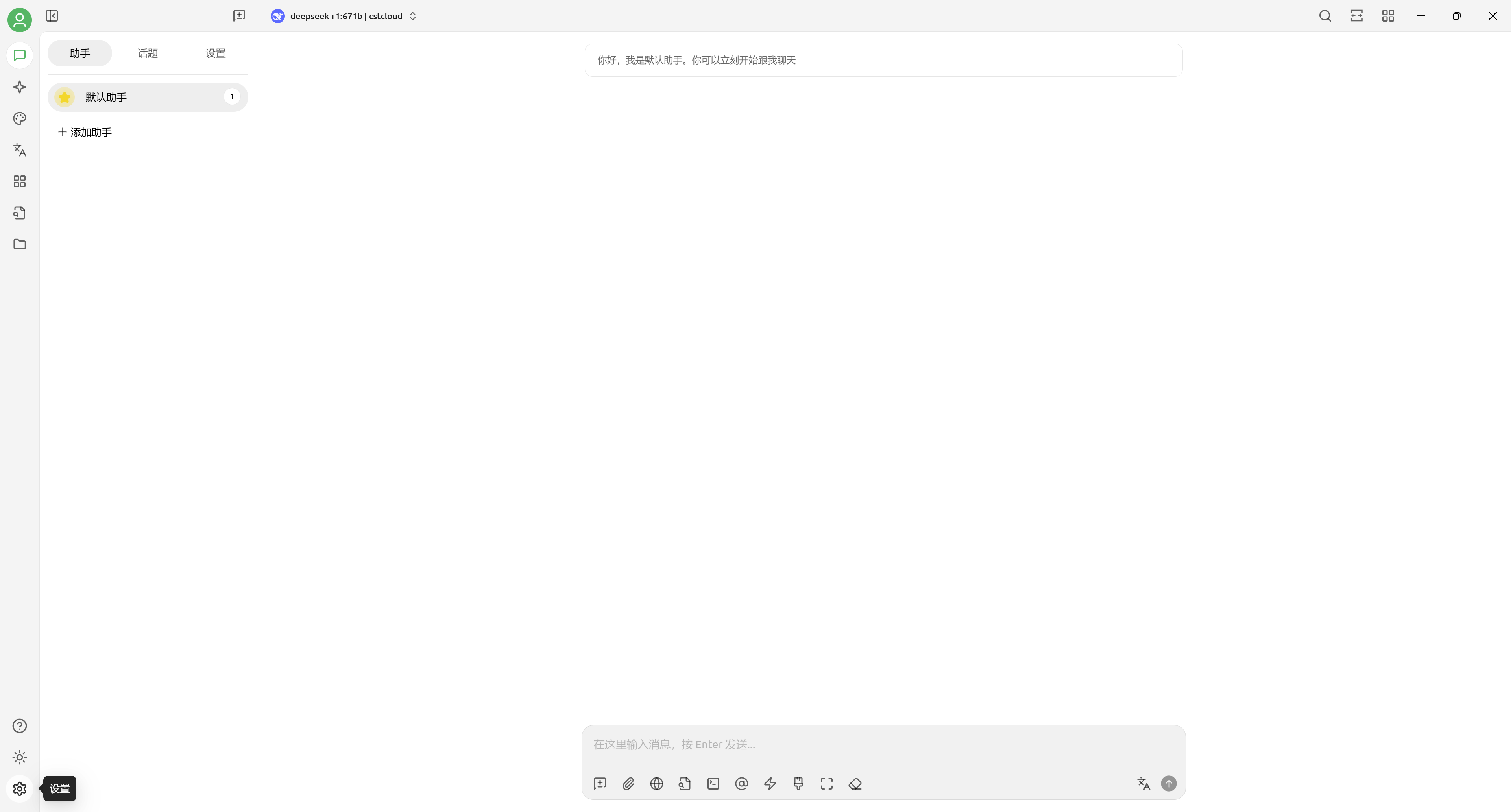 首先选择 Cherry Studio 左下角的设置按钮打开配置页面,如下图: