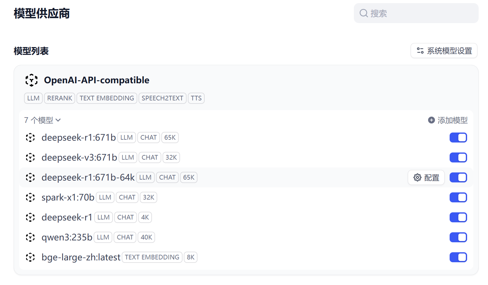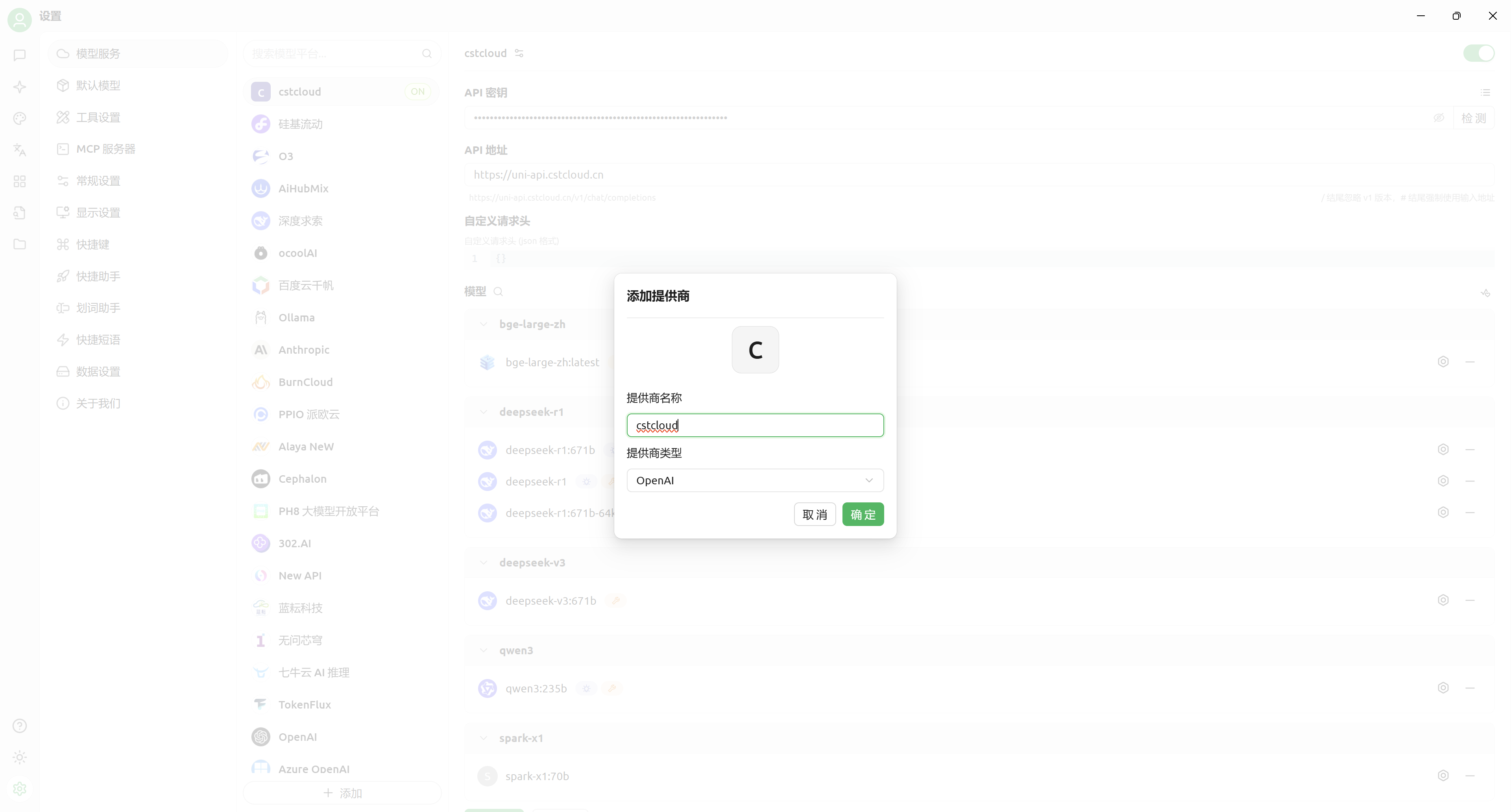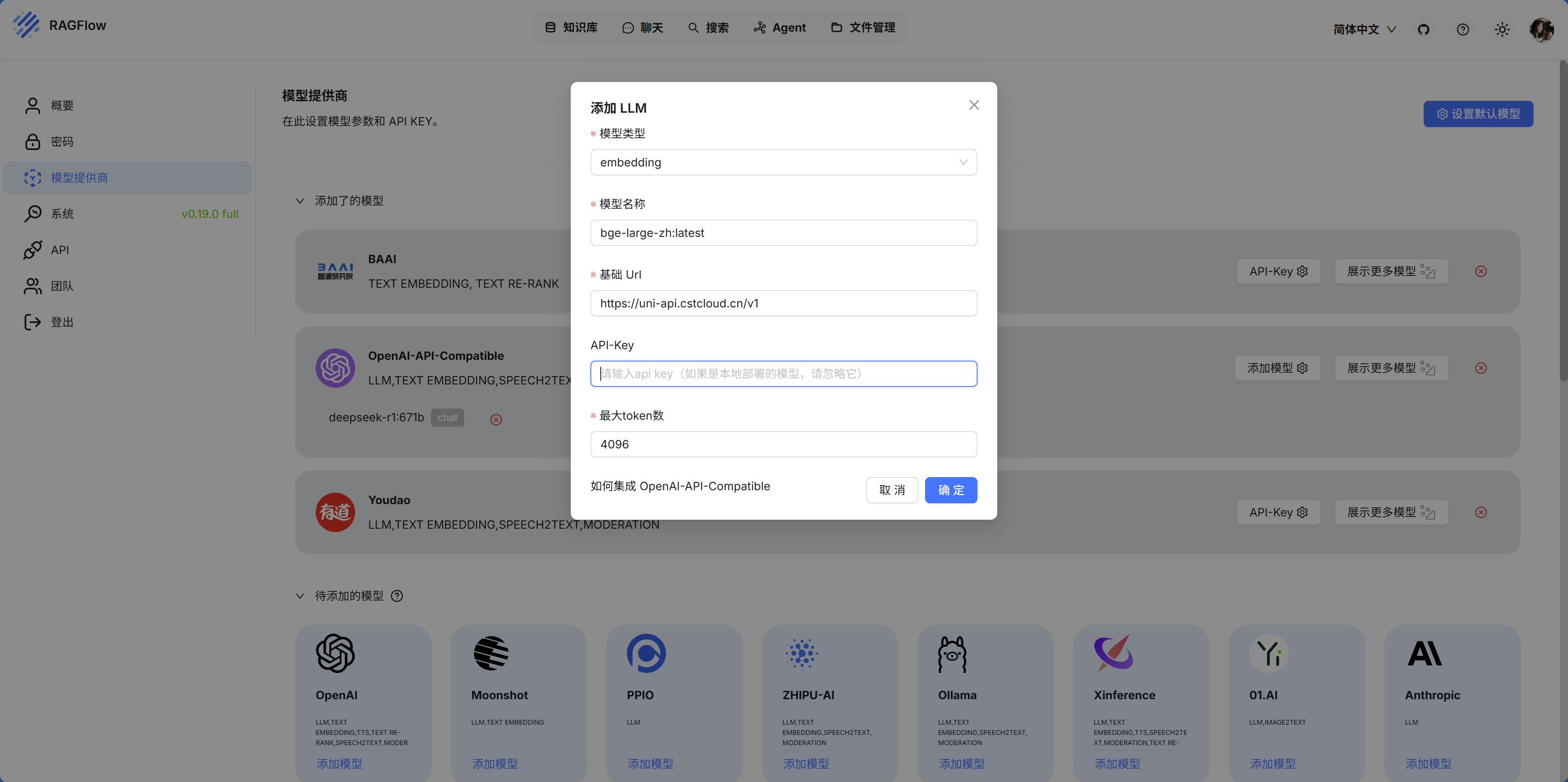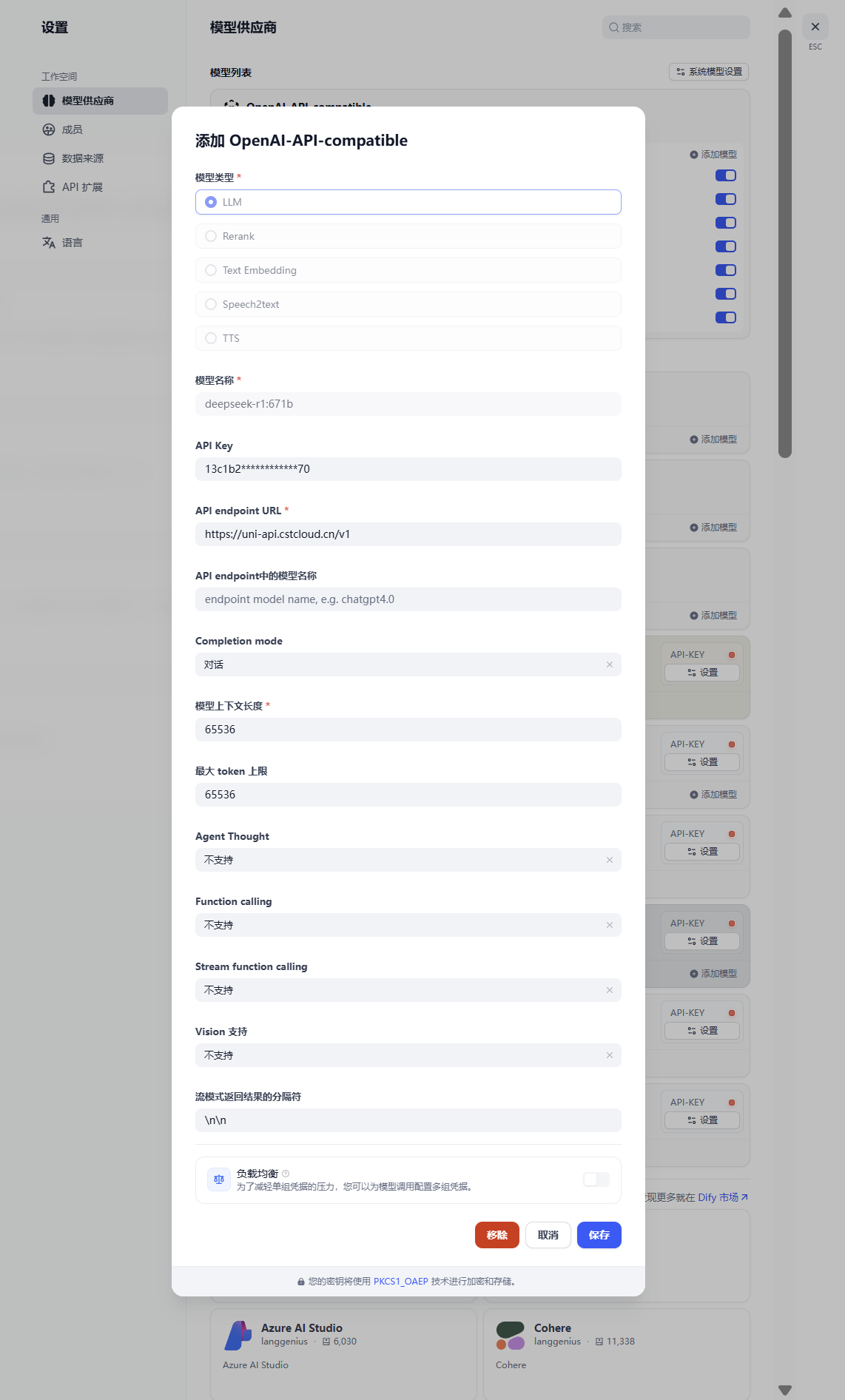 后配置模型信息,如图:然后选择模型提供商列表中的